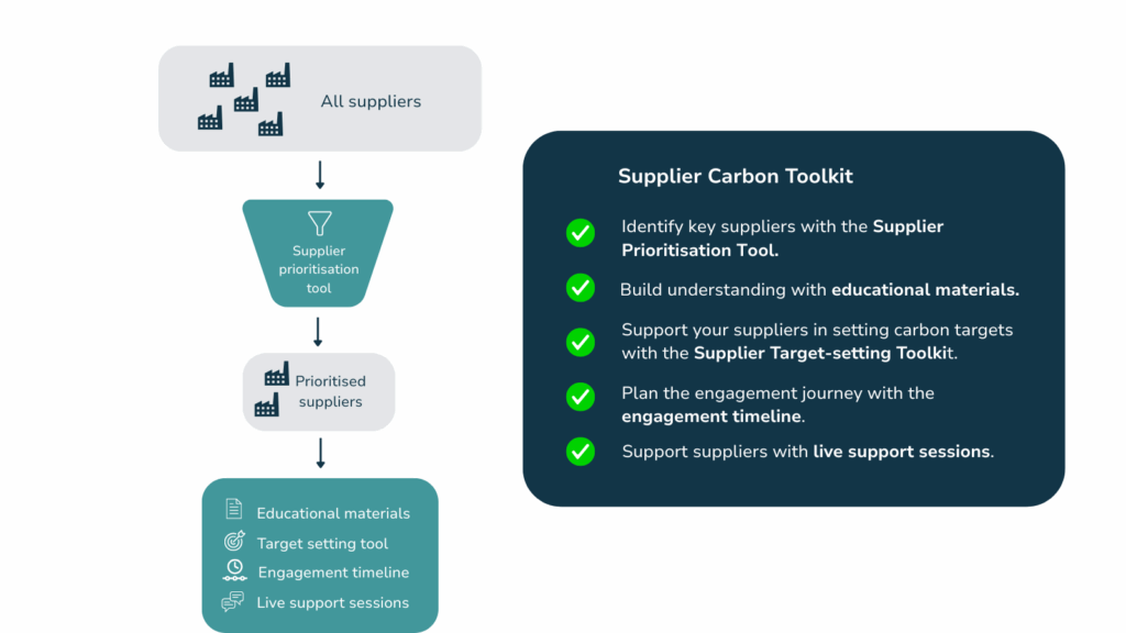 We deliver a Supplier Carbon Toolkit tailored to your organisation, combining data-driven tools with practical resources to help suppliers move from awareness to action.